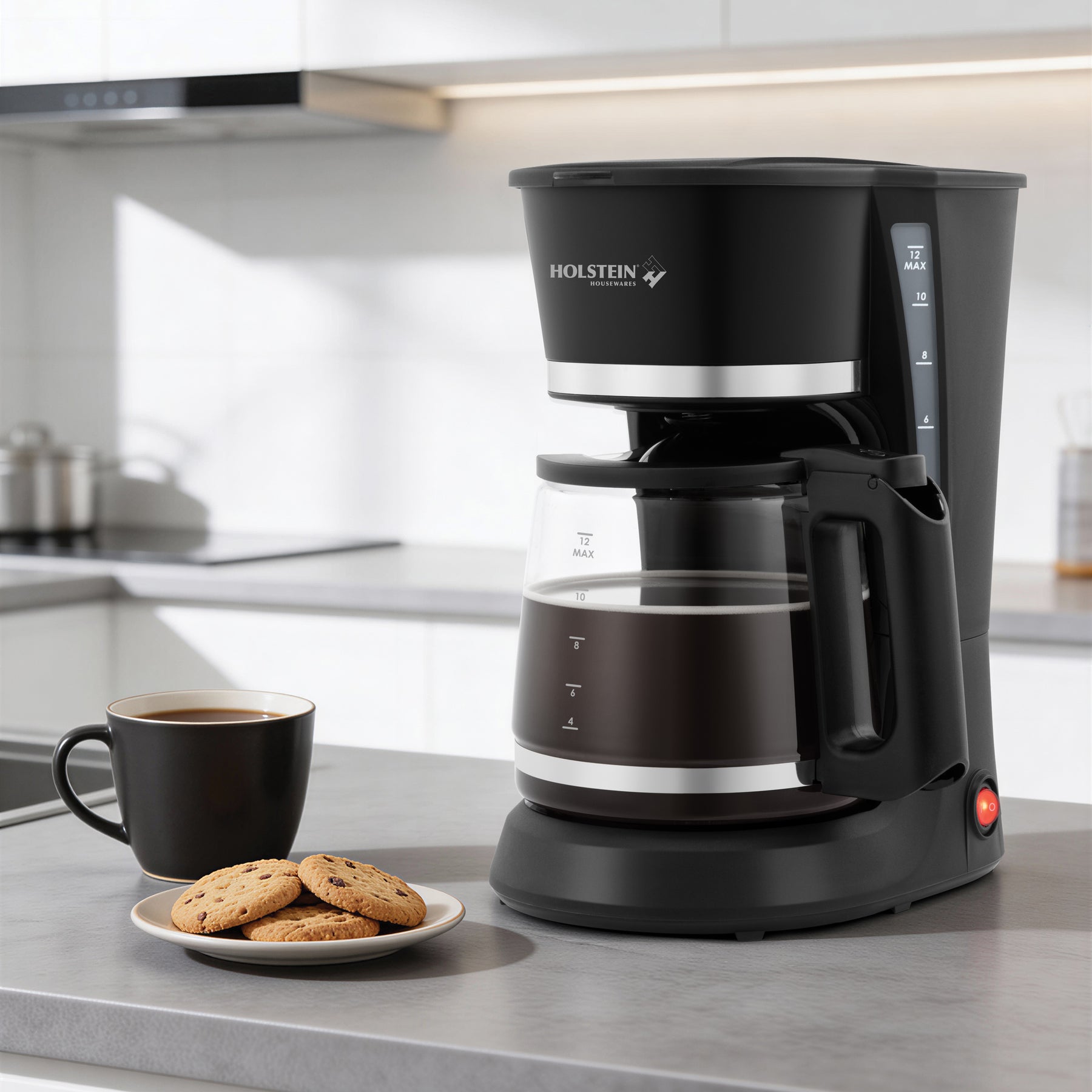 12-Cup Brewing Capacity: Rated water capacity of 1.8 L allows you to brew up to 12 cups of coffee in one cycle, suitable for regular coffee preparation.